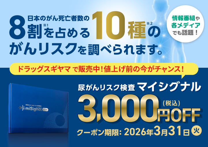 【ドラッグスギヤマ アプリ会員限定】尿で合計10種のがんリスクを判定!3,000円OFFの特別クーポンをご利用いただけます。
