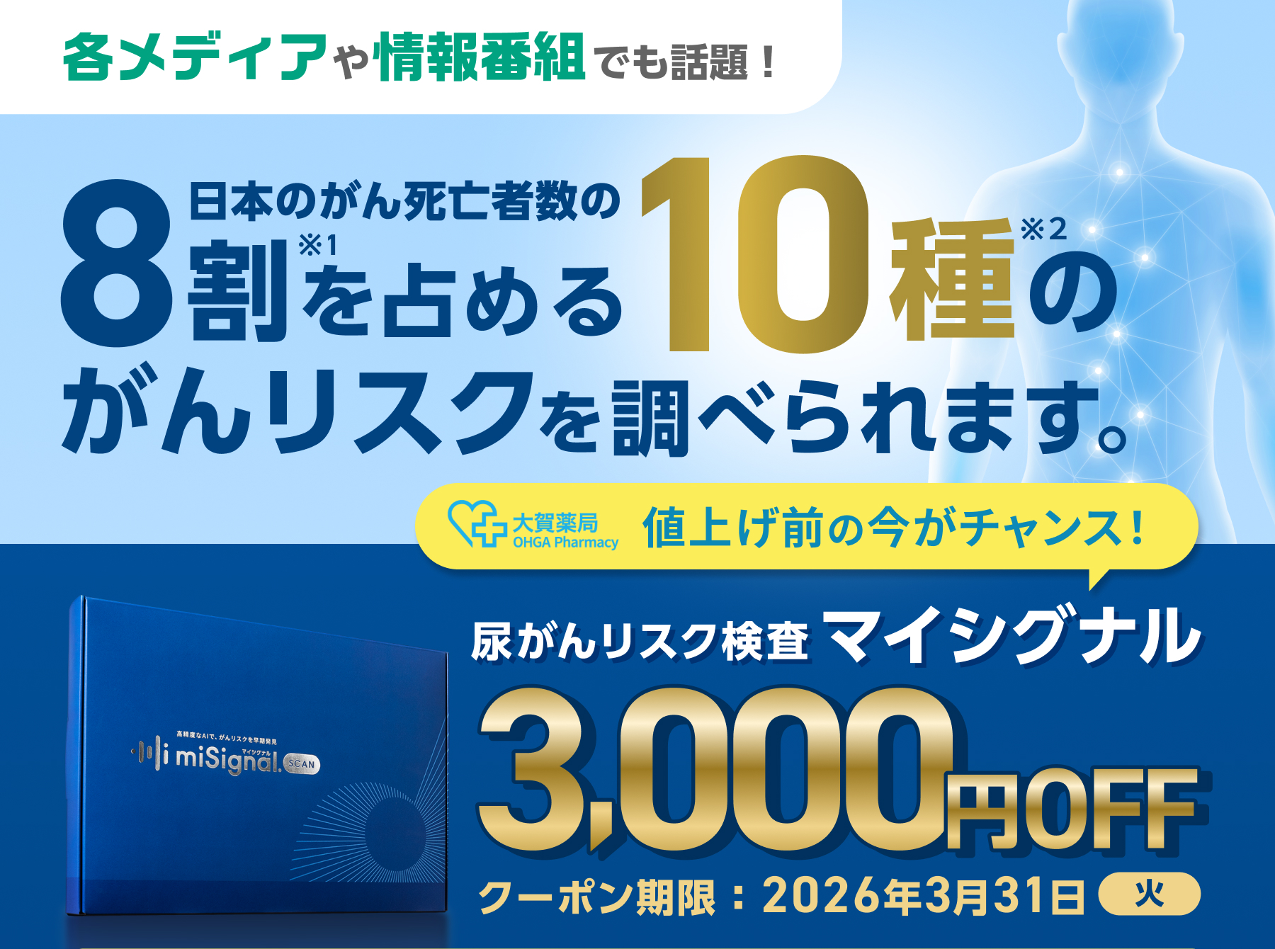 【大賀薬局 LINE・アプリ会員限定】尿で合計10種のがんリスクを判定!3,000円OFFの特別クーポンをご利用いただけます。